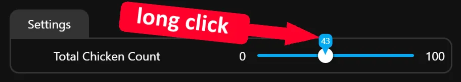 You can change the value by moving the slider. If you wish to enter a precise number you can click and hold the current value. A popup input field will appear where you can enter a number and confirm your input by pressing the enter key.